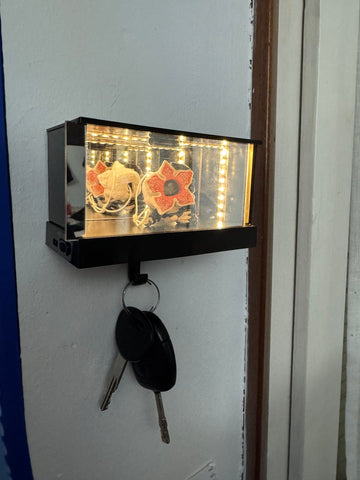 Bewahre deine Schlüssel ordentlich auf und genieße gleichzeitig den beeindruckenden LED-Infinity-Spiegel-Effekt. Ein dekoratives und zugleich praktisches Highlight, das einen Alltagsgegenstand in etwas Außergewöhnliches verwandelt.